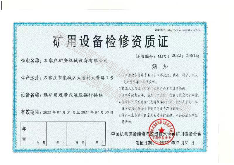 礦用設備檢修資質證